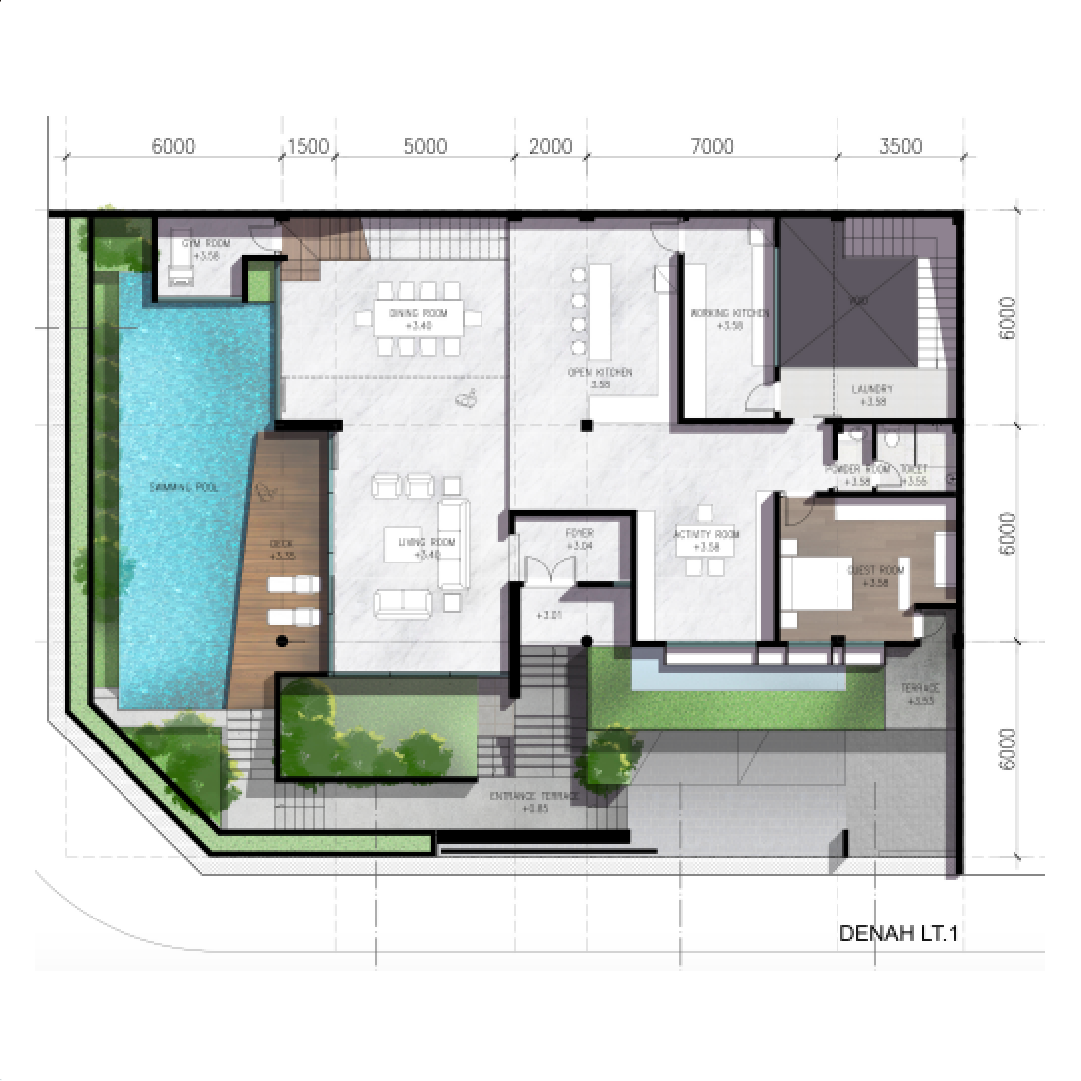 Desain ruang terbuka dan modular yang memungkinkan pengguna untuk dengan mudah mengubah fungsi ruangan tanpa memerlukan perubahan struktural besar. Pemilihan furnitur yang dapat dipindahkan atau konfigurasi ulang juga dapat membantu menciptakan fleksibilitas.